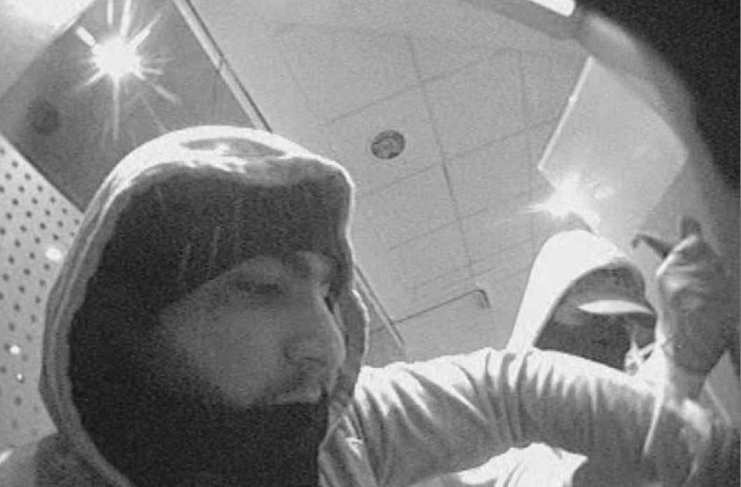 Das gesamte Tatgeschehen wurde durch mehrere Kameras aufgezeichnet. So gibt es neben dem Foto auch eine Beschreibung: Der eine Täter wird als "stabil gebaut" mit leichtem Bauchansatz beschrieben. Bekleidet war er mit einem hellen Kapuzenpullover, grüner Flecktarnhose, dunklen Sandalen sowie weißen Socken und dunklen Arbeitshandschuhen. Darüber hinaus war er mit einem schwarzen Schal beziehungsweise Mundschutz zum Teil vermummt. Trotzdem ist ein dunkler Oberlippenbart zu erkennen.