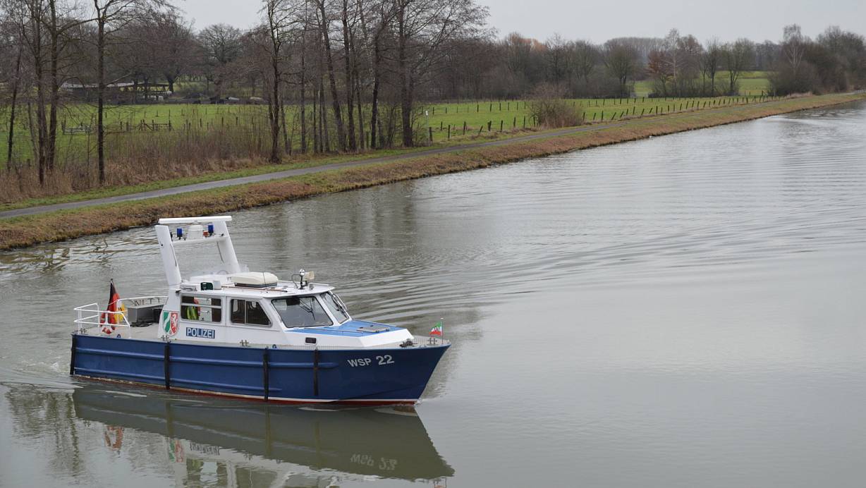 Das Polizeiboot während der Suche auf dem Mittellandkanal. | © Stefanie Dullweber
