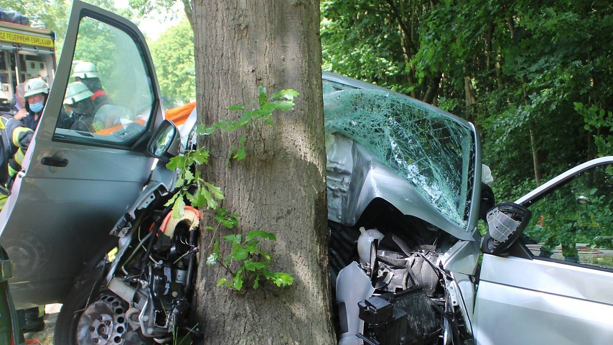 Wie die Polizei am Mittwoch mitteilt, befuhr die Frau die Straße in ihrem VW-Bus von der Osnabrücker Straße kommend in Richtung Fabbenstedt. Das Auto kam auf gerader Strecke kurz hinter der Einmündung "Weißdornstraße" aus bisher unbekannter Ursache nach links von der Fahrbahn ab und kollidierte frontal mit einem Straßenbaum.