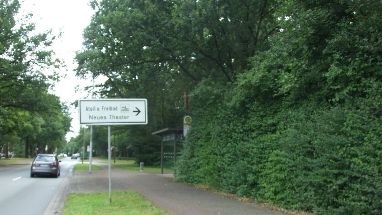 Hier geht's auch zum Atoll und zum Neuen Theater. Das auf der rechten Seite zu sehende völlig eingegrünte Grundstück hat die Stadt Espelkamp für den Neubau einer Polizeiwache zur Verfügung gestellt. | © Karsten Schulz