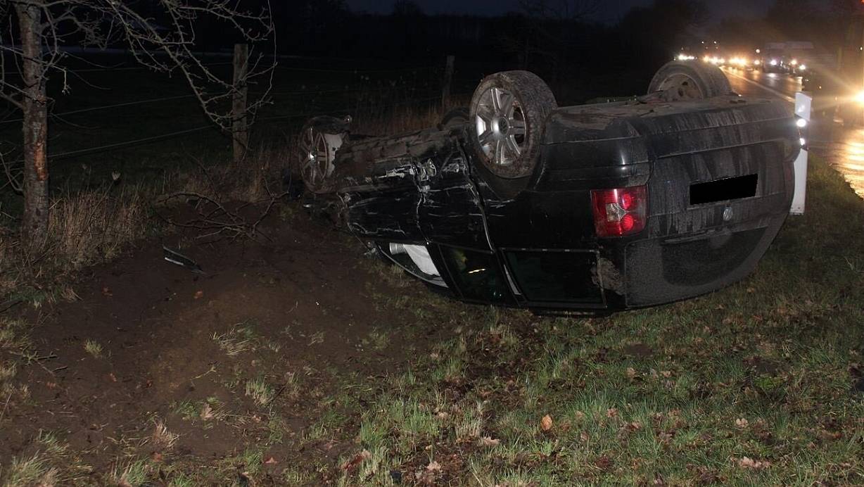 Der VW landet auf dem Dach. | © Polizei Minden-Lübbecke