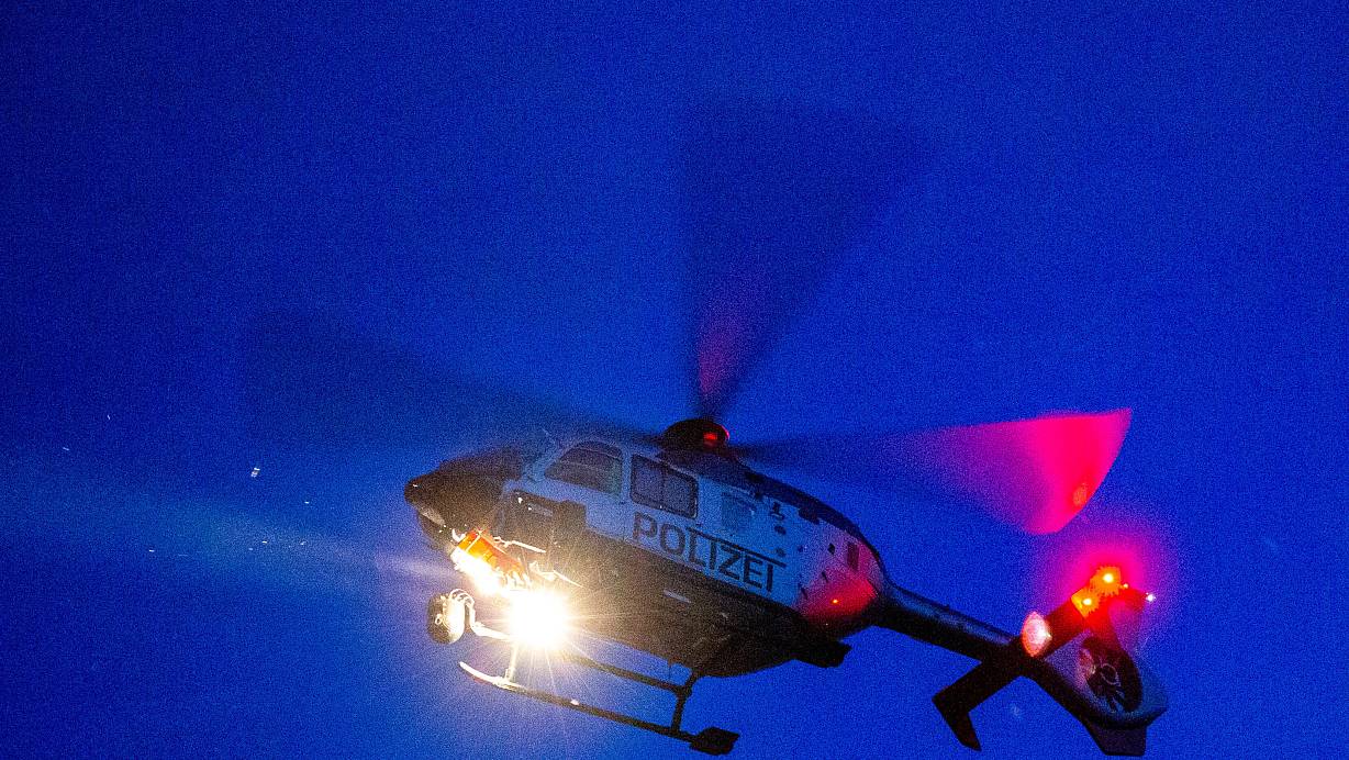 Ein Hubschrauber der Polizei sucht nach vermissten Personen. | © picture alliance/dpa/dpa-Zentralbild