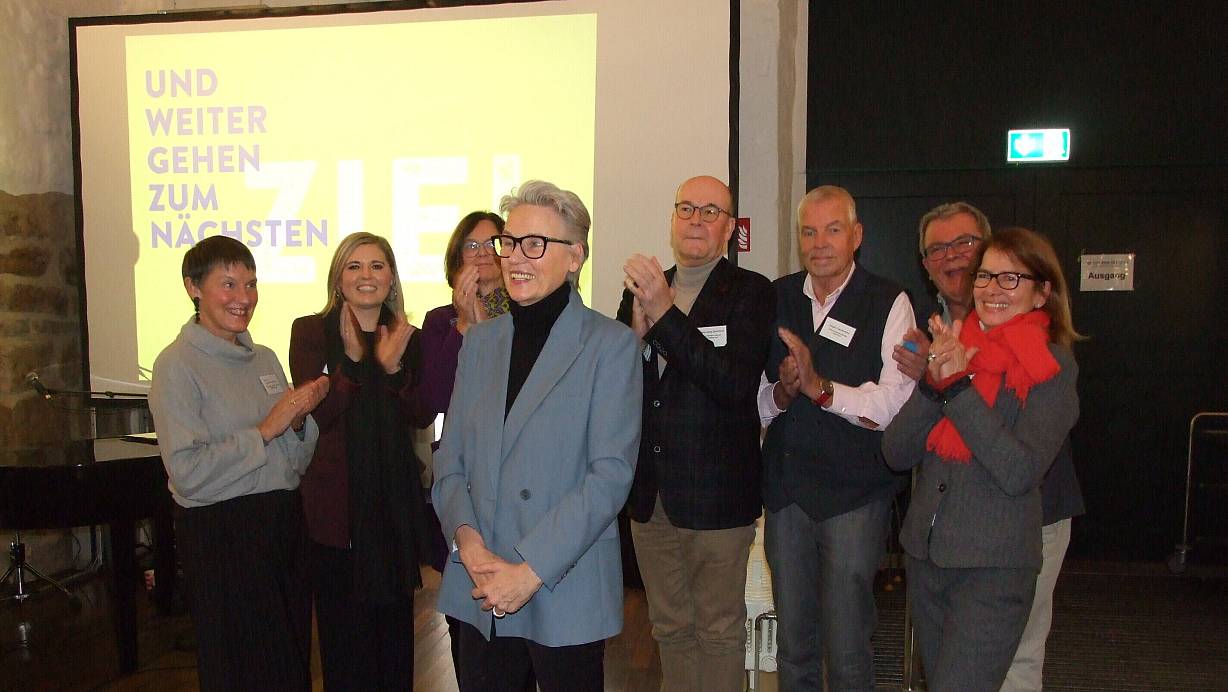 Elke Schmidt-Sawatzki im Kreise ihrer wichtigsten Weggefährten, die ihr jetzt im großen Saal des Gotischen Hauses, der Begegnungsstätte des Paritätischen Minden-Lübbecke, zum Abschied für ihre Lebensleistung applaudierten. | © Karsten Schulz