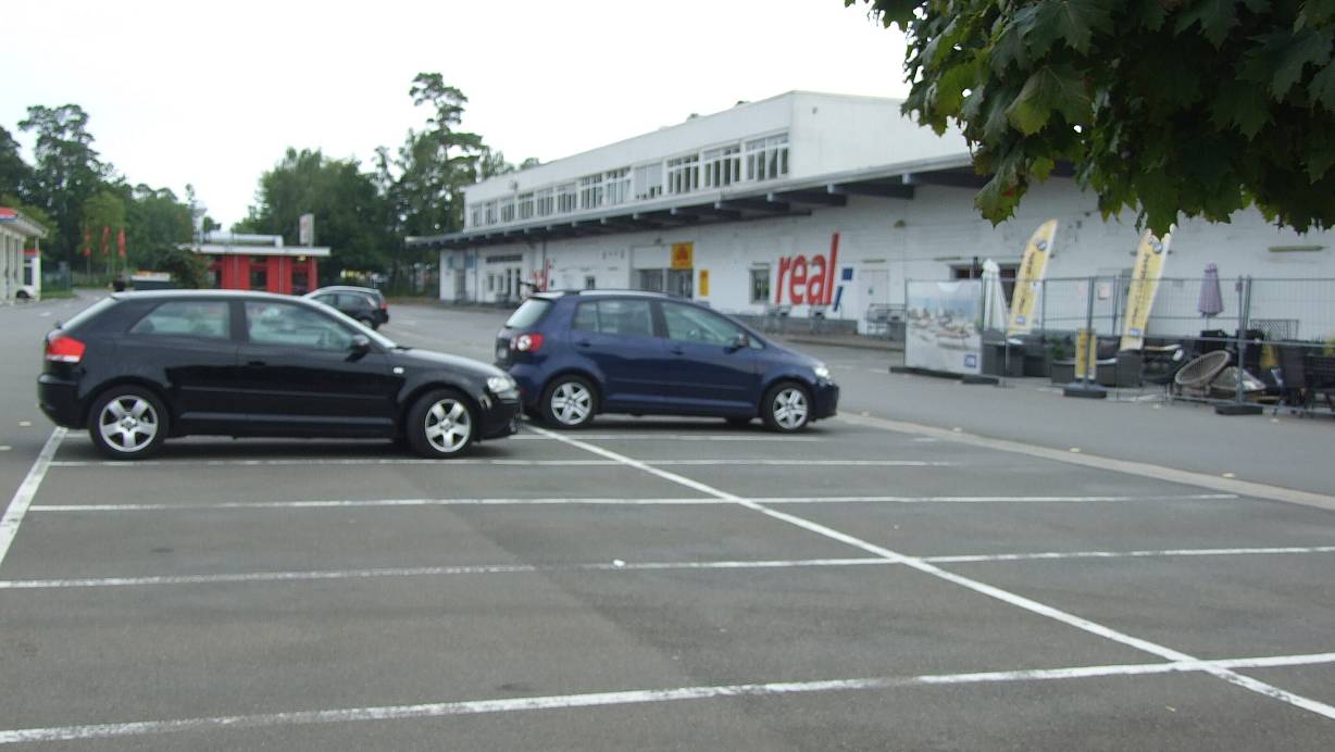 Nur vereinzelt verirren sich Pkw auf den riesigen Parkplatz des ehemaligen Real-Einkaufscenters. | © Karsten Schulz