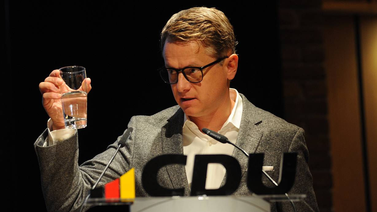 "Die Arbeit der schwarz-roten Bundesregierung: Sekt oder Selters": Unter dieses Motto hatte CDU-Generalsekretär Carsten Linnemann seine Rede beim Parteitag der CDU Minden-Lübbecke in Espelkamp gestellt. | © Joern Spreen-Ledebur