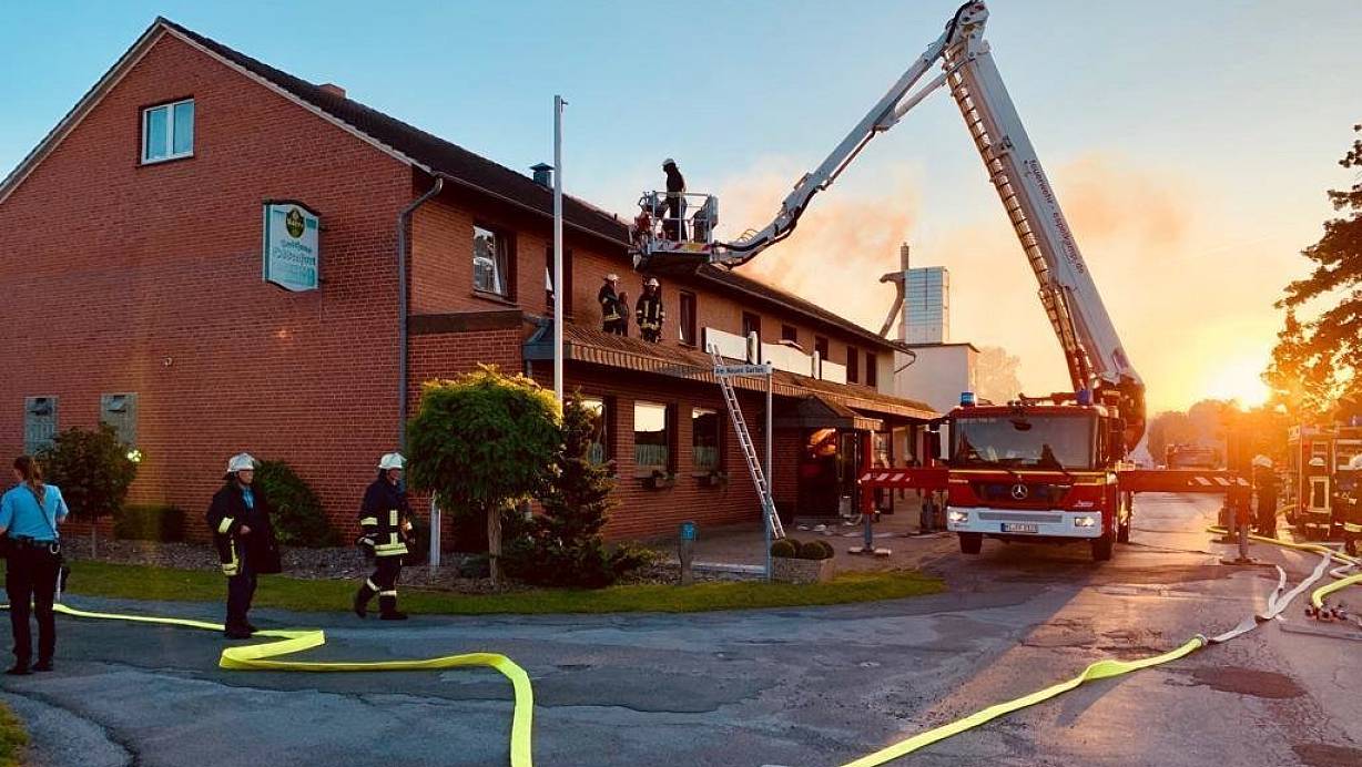 Hille (jhr). Die Hiller Feuerwehr ist am Samstagabend gegen 18.35 Uhr zu einem Dachstuhlbrand beim Restaurant Ossenfort ausgerückt. Da zunächst von einer großen Zahl von vermissten Personen ausgegangen wurde, alarmierte die Leitstelle die Einsatzkräfte unter dem Stichwort "Massenanfall von Verletzten", berichtet das Mindener Tageblatt.