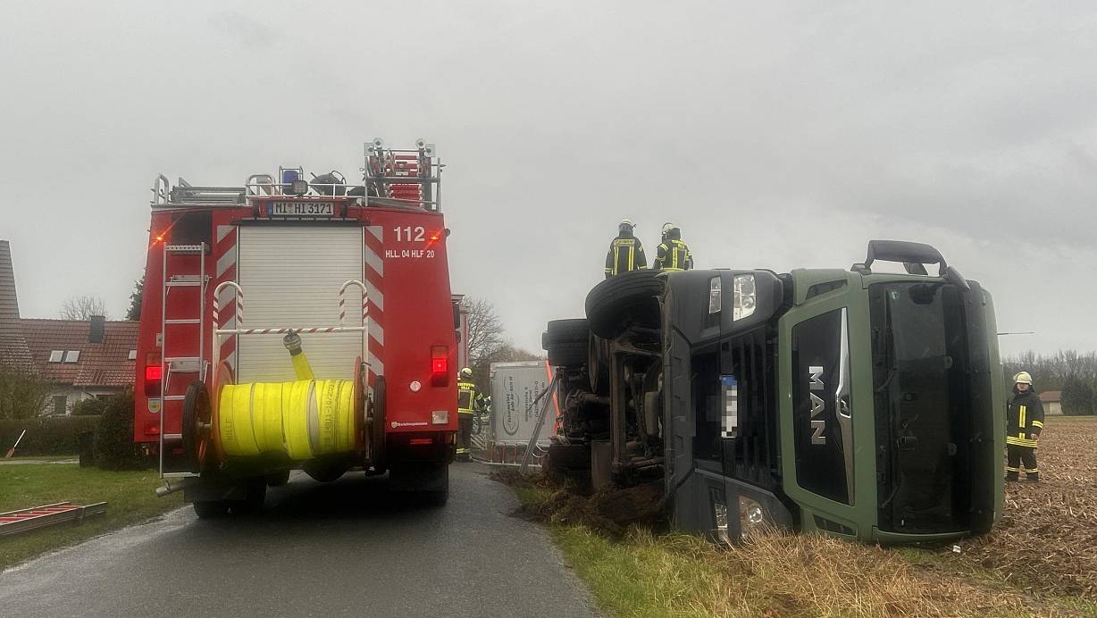 Mehrere Einsatzkräfte der Feuerwehr sowie der Landwirt befreien die Tiere.