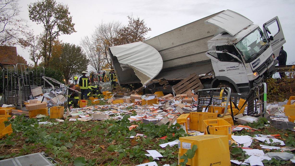 Post-Lkw verliert bei schwerem Unfall Briefe für den Altkreis Lübbecke