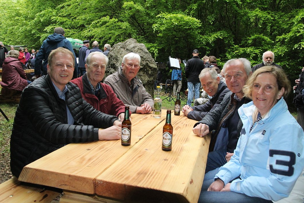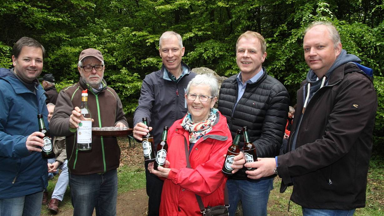 Angestoßen wurde auf den Geburtstag stilecht mit einem mit heimischen Gebirgsquellwasser gebrautem Pils und einem hochgeistigen Getränk. Die Heimatfreunde servierten Reineberger Burgbrands, eine Spezialität der ehemaligen Reinberger Schnapsbrennerei und eine echte Rarität. Bis die Wanderer wieder zum Abstieg aufbrachen, unterhielt der Shanty-Chor des Heimatvereins Singkreis Ahlsen-Reineberg.