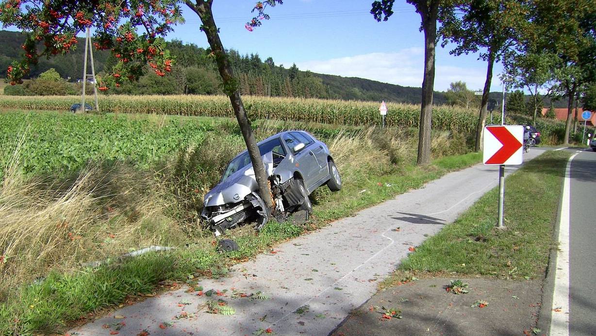 Eine 24-jährige Frau aus Hüllhorst ist am frühen Dienstagnachmittag mit ihrem Auto von der Straße abgekommen und gegen einen Baum geprallt. Die Fahrerin wurde leicht verletzt.