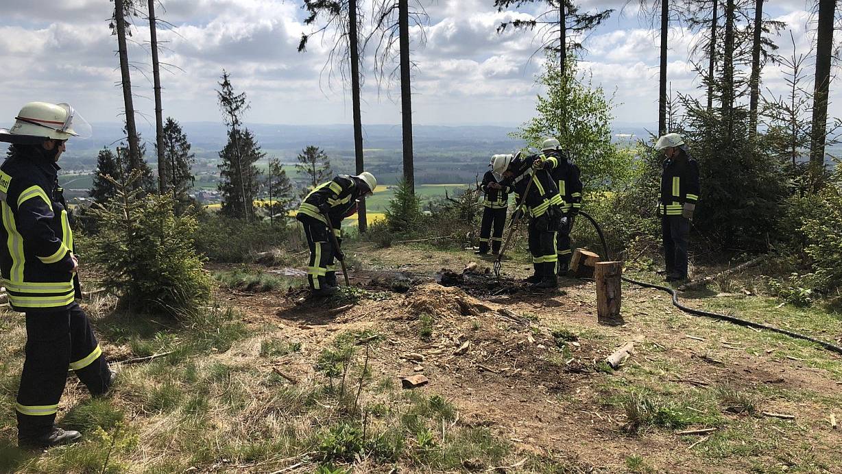 Nach rund eineinhalb Stunden war der Schwelbrand im Wiehengebirge am Samstag, 25. April, gelöscht. Am Brandort fand die Feuerwehr Grill-Reste. | © Feuerwehr Hüllhorst