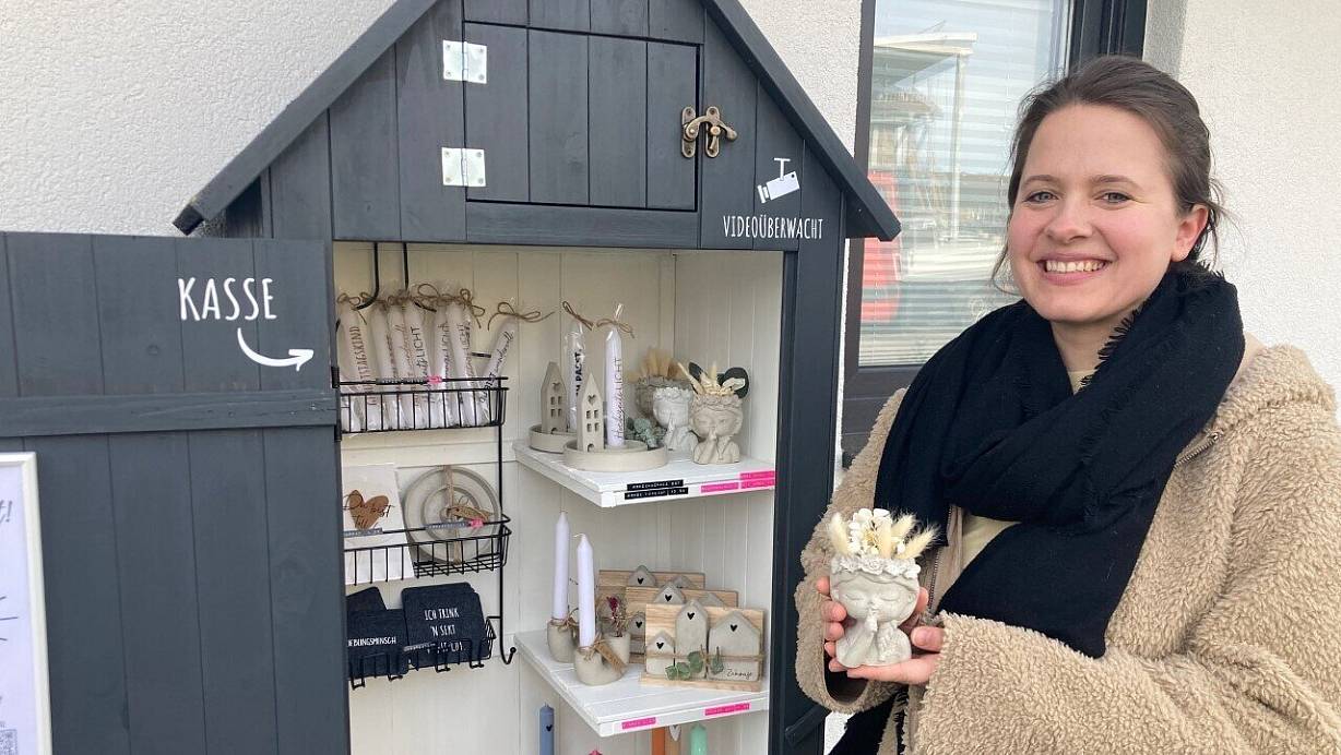 Die 33-jährige Sarah Scheer bietet ihre individuellen Deko-Artikel schon länger erfolgreich auf Instagram an. Jetzt ist ein kleiner Selbstbedienungsladen vor der eigenen Haustür dazugekommen. Wie das funktioniert.