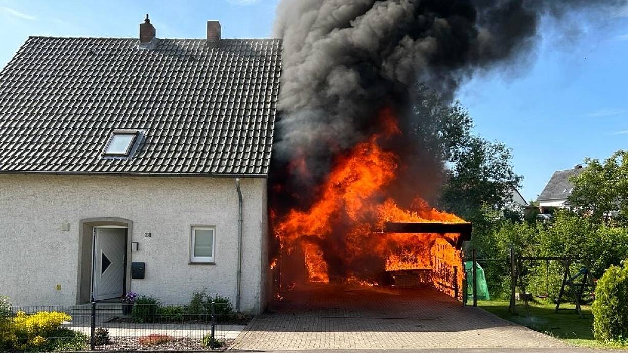 Nicht mehr bewohnbar: Carport-Brand im Kreis Minden-Lübbecke greift auf Wohnhaus über