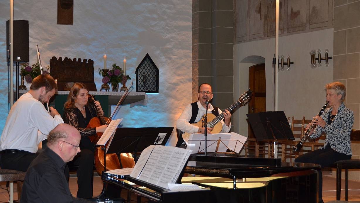 Ariel Lazarus mit seinem Ensemble: Anja Vehling (r.), Aaron Müller (l.), Katrin Langewellpott (2. v. l.) und Heinz-Hermann Grube (am Klavier). | © Imme Lohmeyer-Lorek