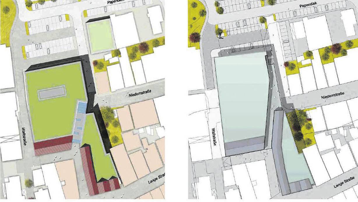 Neben Edeka zieht die Kaufhaus-Kette in den Neubau ein. Auch Gastronomie, eine Bäckerei und ein Schuhmarkt sind im Gespräch. Parken eventuell in ganz Lübbecke kostenfrei
