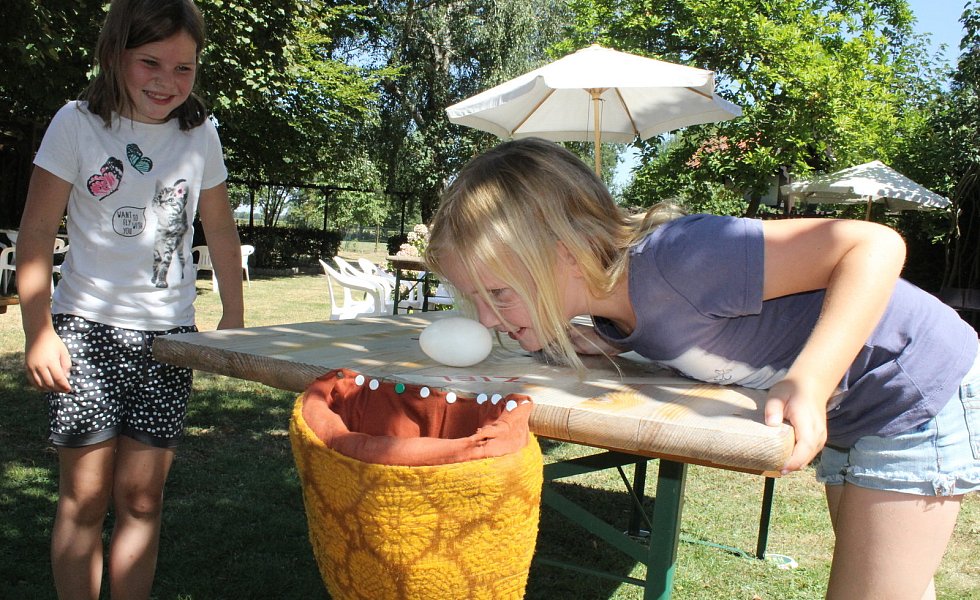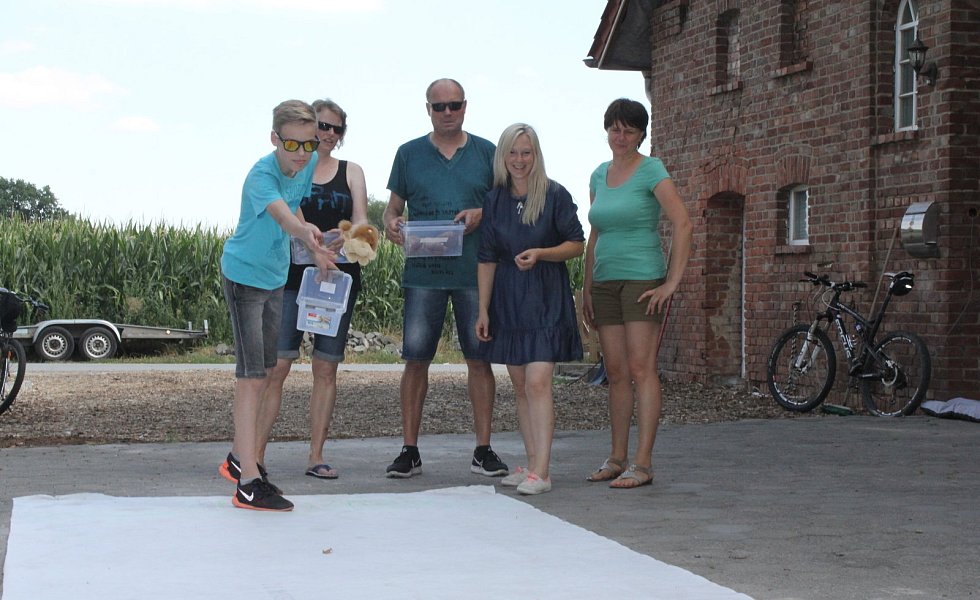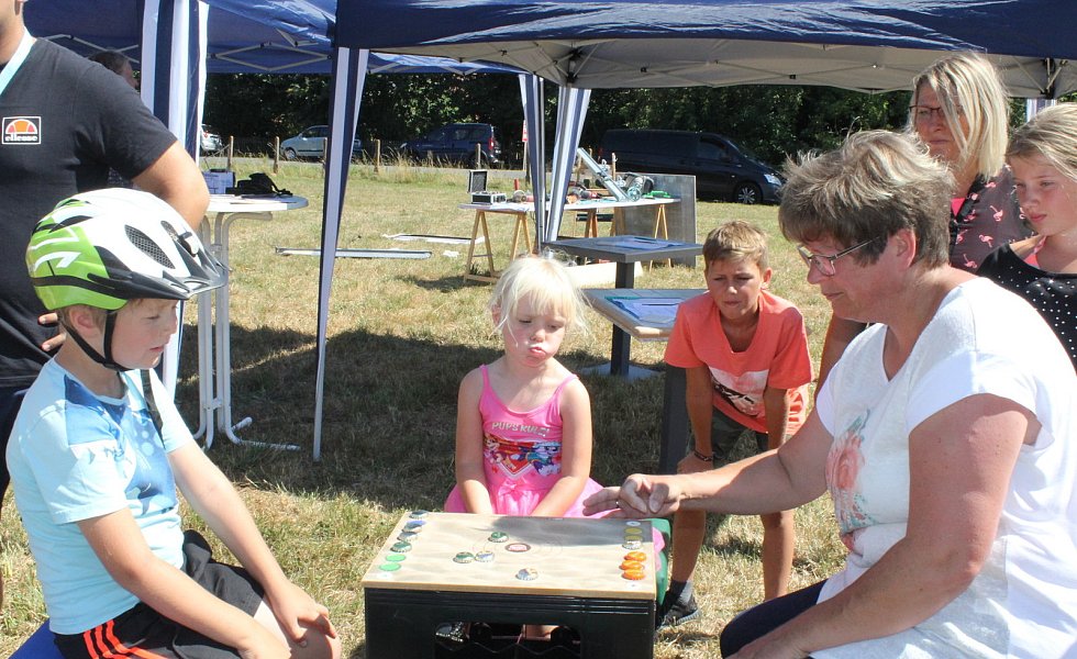 Die einzelnen Spielstationen boten jede Menge Spaß. Auf dem Hof Treseler wartete ein Melkstand auf geübte Hände. Wilm Treseler gab gerne Tipps, wie richtig gemolken wird. Im Biergarten des Gasthauses Albersmeyer galt es mit der Nase ein Gänseei über einen Zick-Zack-Kurs in einen Beutel zu schubsen. Der Malerfachbetrieb Bernardt lud zum Nagelbalken ein. Ganz Mutige wie Gerd Mühlnickel hauten den Nagel mit der Axt in den Baumstamm. Im "Eulennest im kleinen Stall" gingen die Teilnehmer mit Kuscheltieren auf die Jagd nach dem rosaroten Schweinchen. Überall wurden den Besuchern kleine Erfrischungen angeboten.