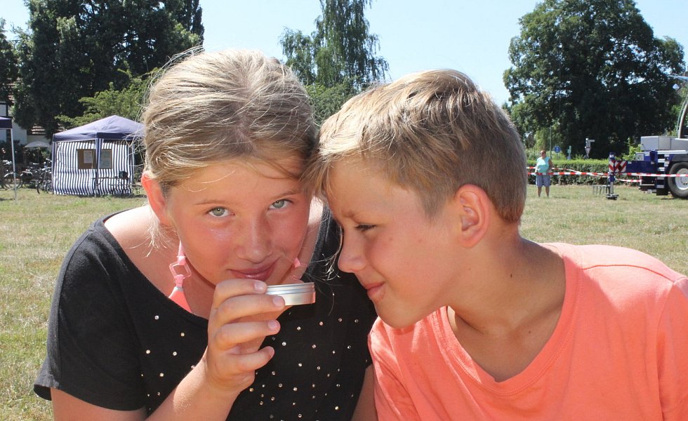 Lübbecke-Stockhausen. Ob Blüten-, Sommertracht- oder Wald-Honig: "Die schmecken alle gut", lobten Ingrid und Birte Kläs den Honig von Herbert Kummer. Genussvoll hatten sie ein Löffelchen des Blütennektars auf der Zunge zergehen lassen. Zu kaufen gab es den Honig in der Stockhauser Vitrine, die immer auf dem Stockhauser Markt geöffnet ist. In diesem Jahr aber konnten die Gäste nicht nur über den Kunsthandwerkermarkt bummeln sowie allerlei Köstlichkeiten aus dem Backofen und vom Grill genießen, sondern sich auch auf eine Dorfrallye begeben.
