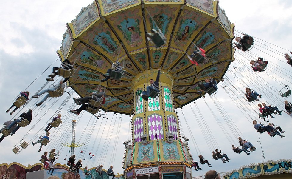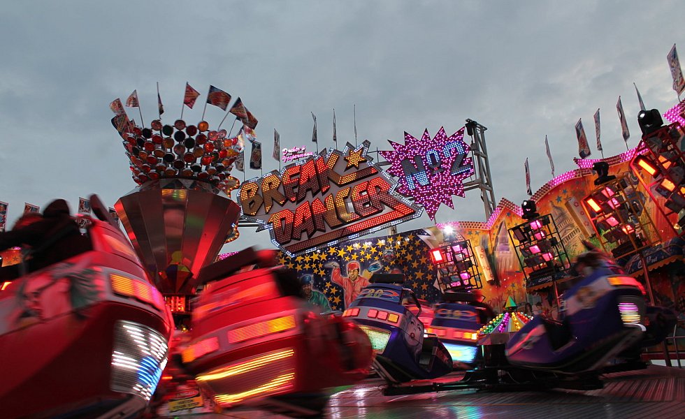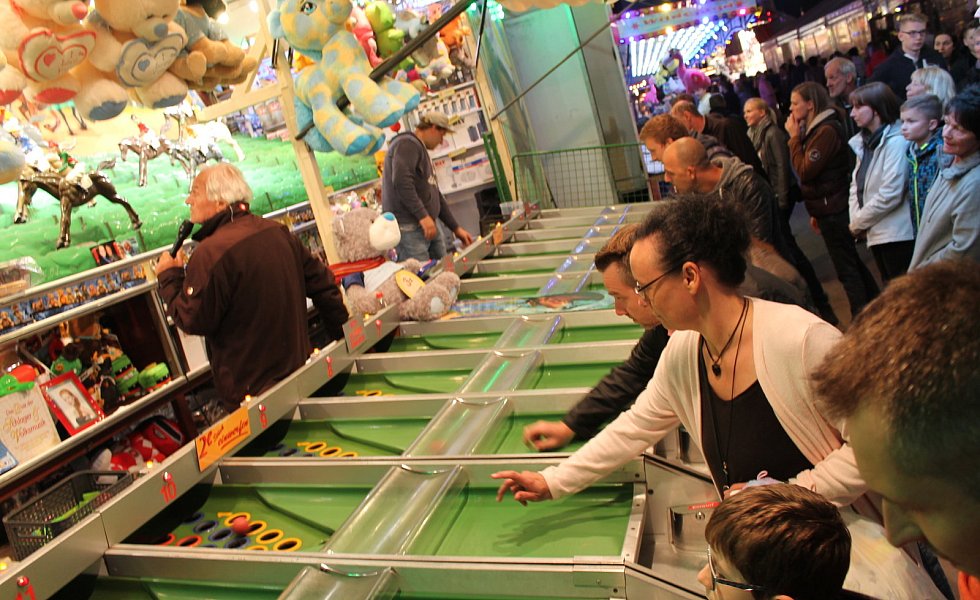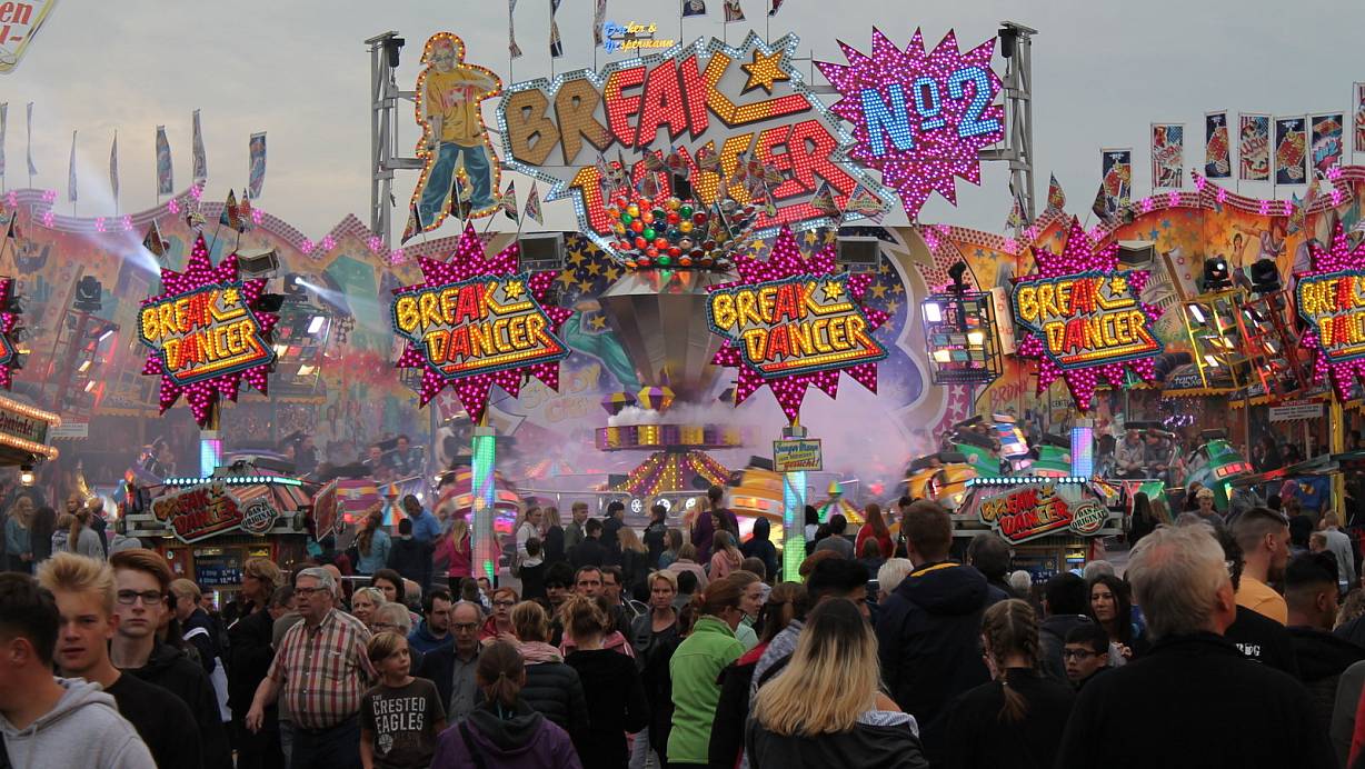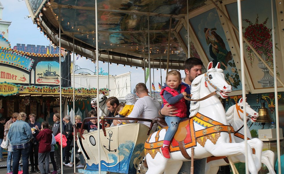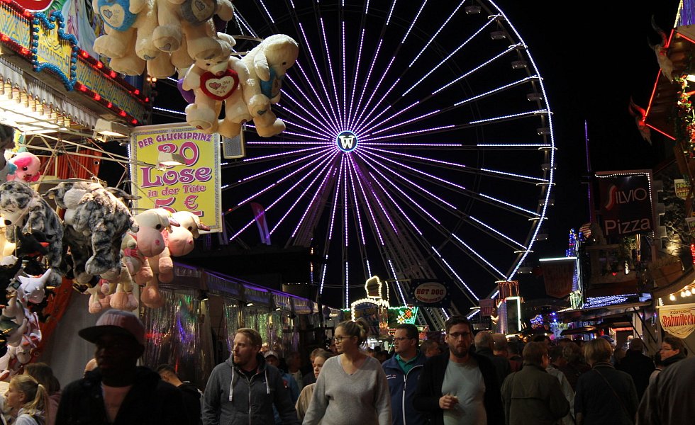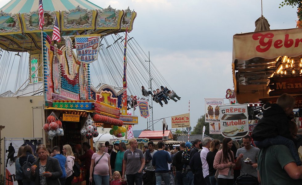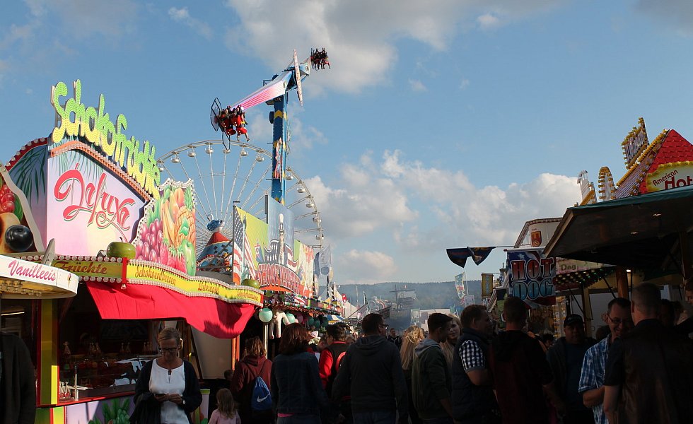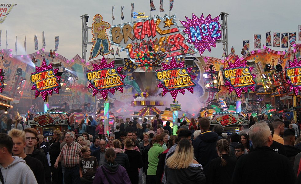 Während in den Zelten das Leben tobte, herrschte auch draußen dichtes Gedränge. Viele Menschen schlenderten gemütlich entlang der Buden zwischen Kettenkarussell, Riesenrad und Breakdancer, stöberten auf dem Krammarkt und andere bahnten sich durch die Wege des Gewerbezelts. Der abwechslungsreiche Jahrmarkt hatte für jeden etwas zu bieten.