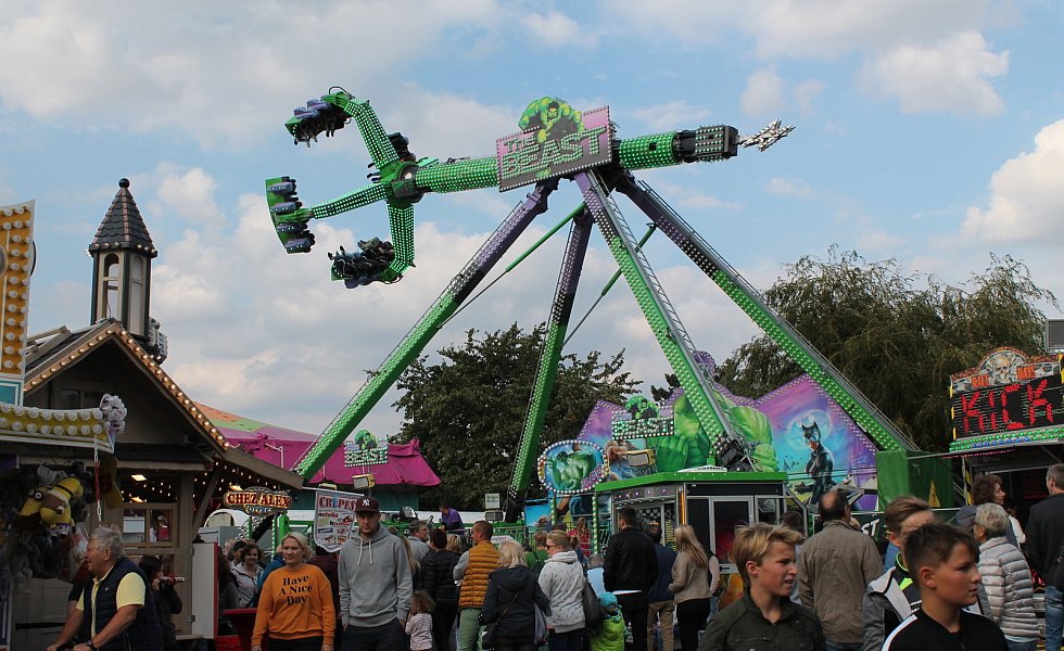Lübbecke-Blasheim. 45 Meter Flughöhe im Riesenkettenflieger, die Beschleunigung auf 130 Stundenkilometer in 42 Metern Höhe im „Fighter" oder die 360-Grad-Drehung in „The Beast" – so manchem Besucher wurde bei diesen Fahrgeschäften schon vom bloßen Zuschauen flau im Magen. Doch die langen Warteschlangen auf dem Blasheimer Markt sprachen für sich. Die waghalsigen Karussell-Profis schwangen sich in die Gondeln und drehten – oft begleitet von viel Gekreische – ihre Runden.