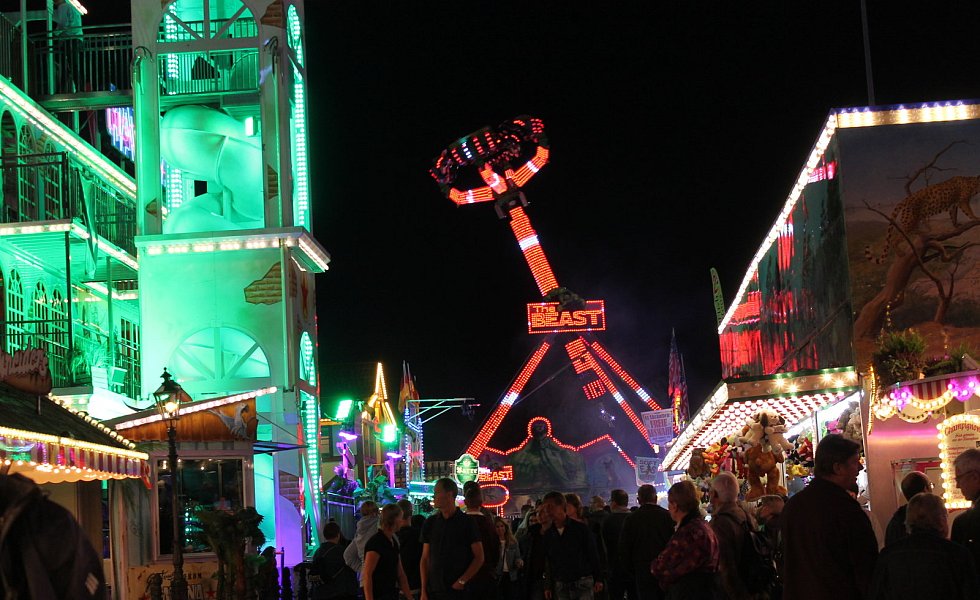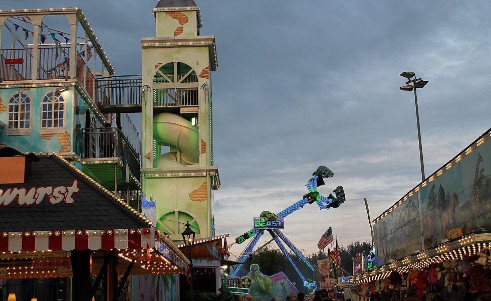 Die einen kreischten vor purer Freude, die anderen, weil sie es hoch oben über Kopf vielleicht doch etwas mit der Angst zu tun bekamen. Manche wählten da im „Beast" lieber gleich die familienfreundliche Alternative einer Schaukelfahrt mit „nur" einer 120-Grad-Drehung.
