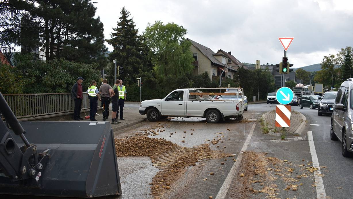 Verkehrschaos: Landwirt verliert Kartoffel-Ladung auf B239 in Lübbecke