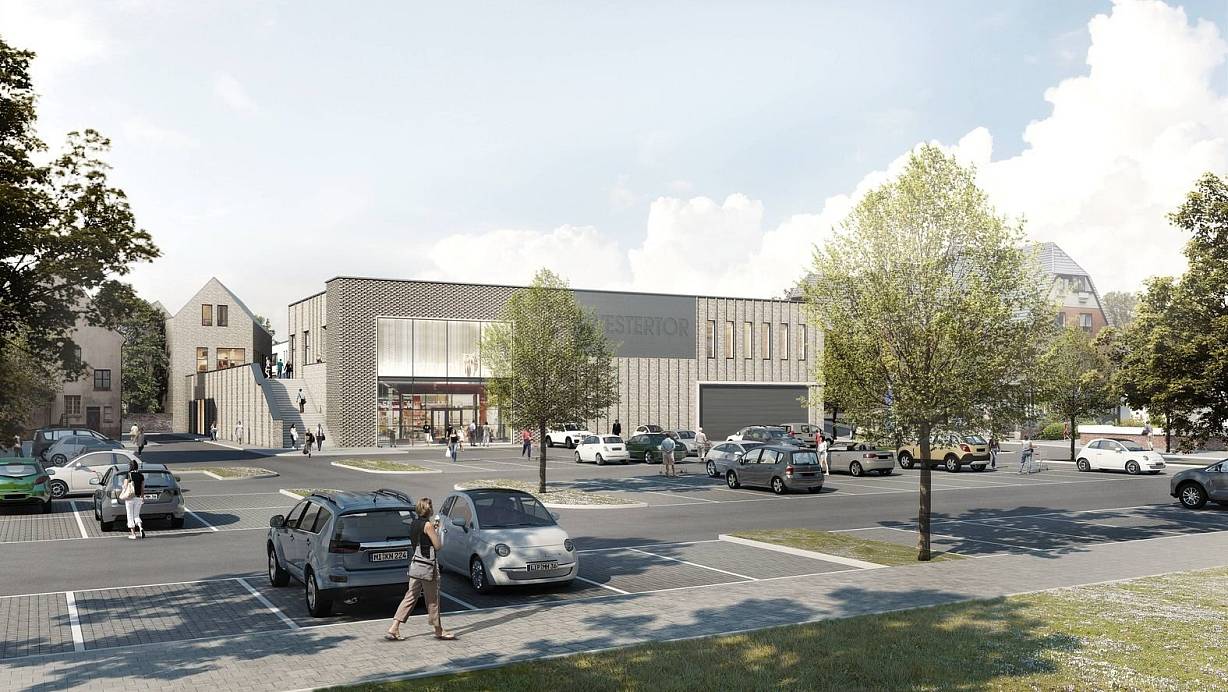 Der HBB-Entwurf zeigt, wie der Parkplatz am "Westertor" aussehen könnte, wo sich heute der Busbahnhof befindet | © RKW+/HBB