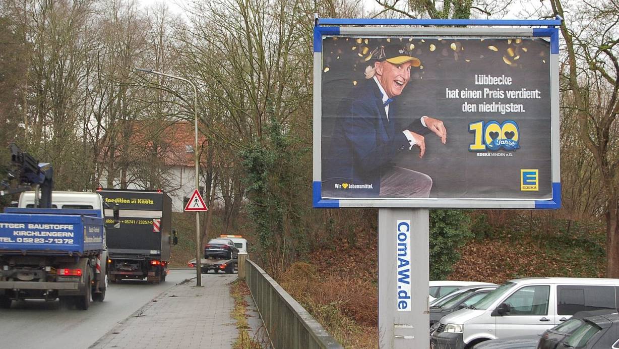 Mit diesem Werbeslogan auf einem Großplakat an der B 239 feiert Edeka seinen einhundertsten Geburtstag. Er disqualifiziere sich damit selbst, meinen die Minden-Lübbecker Landfrauen.