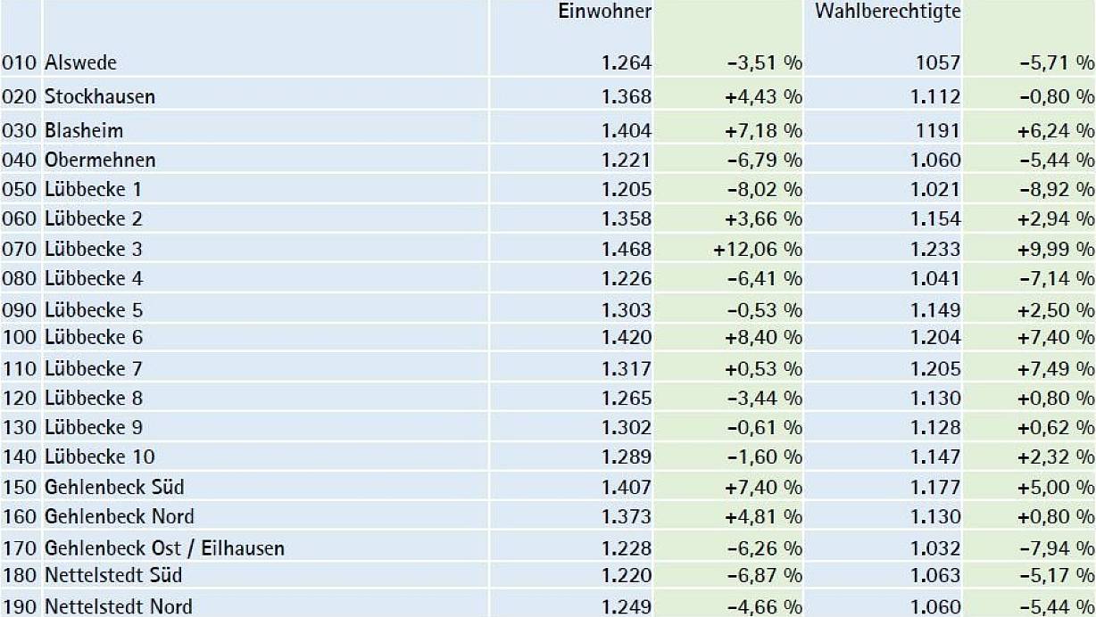 Mehr als 21.000 Bürger können am 13. September ihre Stimme abgeben. Die Bezirke mit den meisten und mit den wenigsten Wahlberechtigten befinden sich beide im Gebiet der Kernstadt.