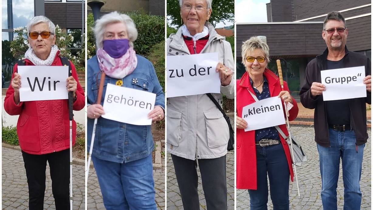 Ilona Steinmeier (1. Vorsitzende des Blinden-und Sehbehindertenverein Lübbecke, v.l.), Ilona Brammeyer, Elisbeth Speckens und Ursula Ireland (2. Vorsitzende) in Begleitung ihres Ehemann Stephen Ireland hoffen weiter auf Barrierefreiheit. | © Blindenverein Lübbecke
