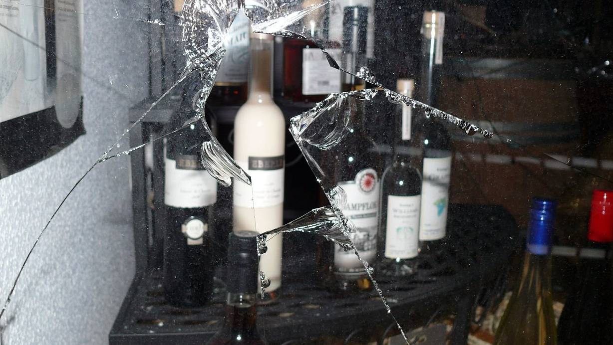 Die Schaufensterscheibe des Weinkontors in der Tonstraße wurde zerstört. | © Polizei Minden-Lübbecke