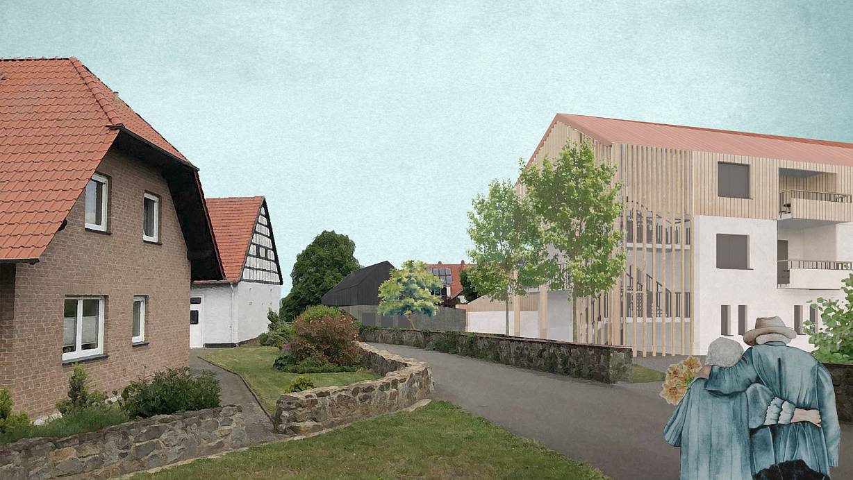 Blick in der Bachstraße nach Norden auf das geplante „Scheunenhaus", das Platz für bis zu neun Wohnungen bieten soll. | © hsi-planungs-gmbh/karl Lindstedt architekt bda