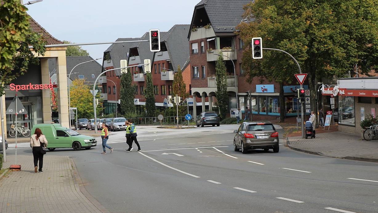 Ein Mini-Kreisel soll die Ampeln an dieser Lübbecker Kreuzung ersetzen, damit der Verkehr flüssiger fließen kann. | © Jan-Henrik Gerdener