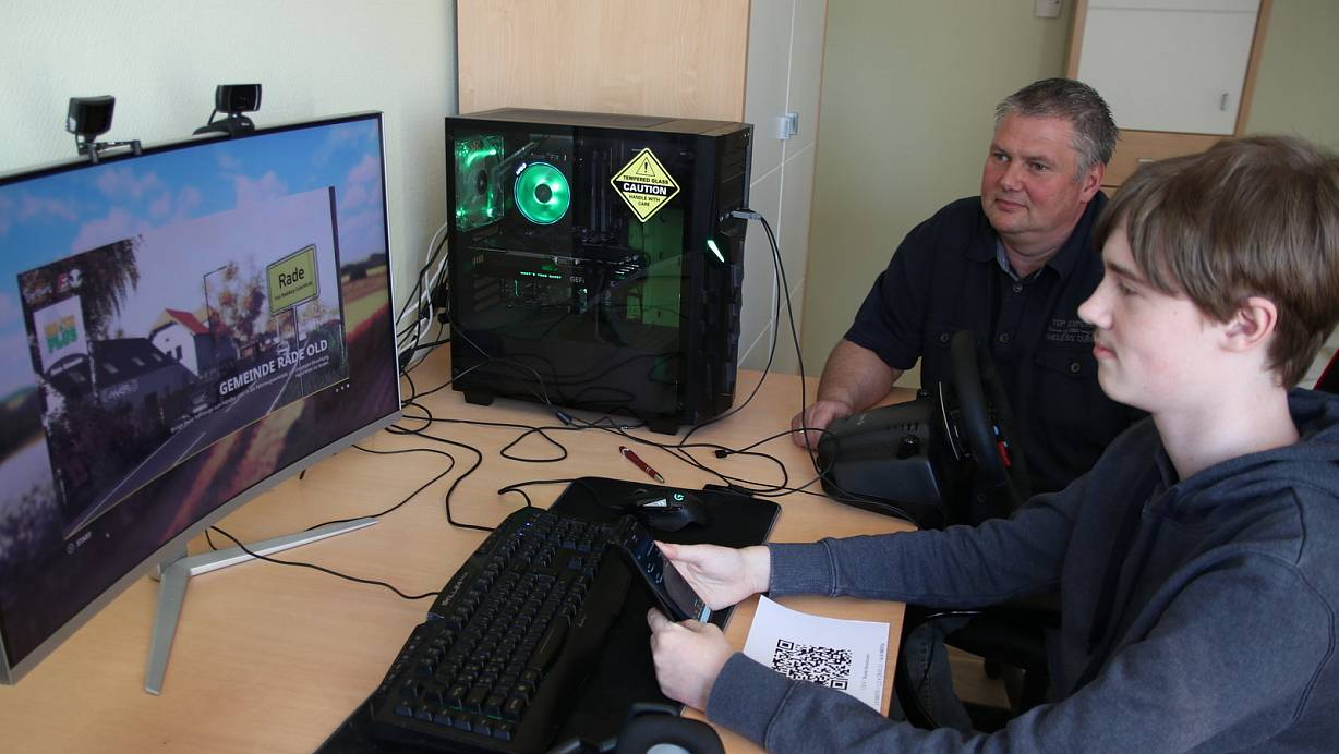 Frank Olschewski will seinem Sohn Lionel ein Gefühl dafür vermitteln, welche Stromkosten die tägliche Nutzung seines Computers verursacht. | © Frank Hartmann