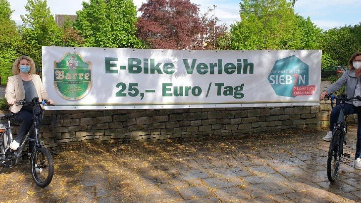 Mit E-Bikes sind Mandy Kübert (l., Fahrradhaus Lohmeier, Pr. Oldendorf) und Martina Busche (Kurhaus Pivittskrug) unterwegs. | © Tourismusverband "Sieben"
