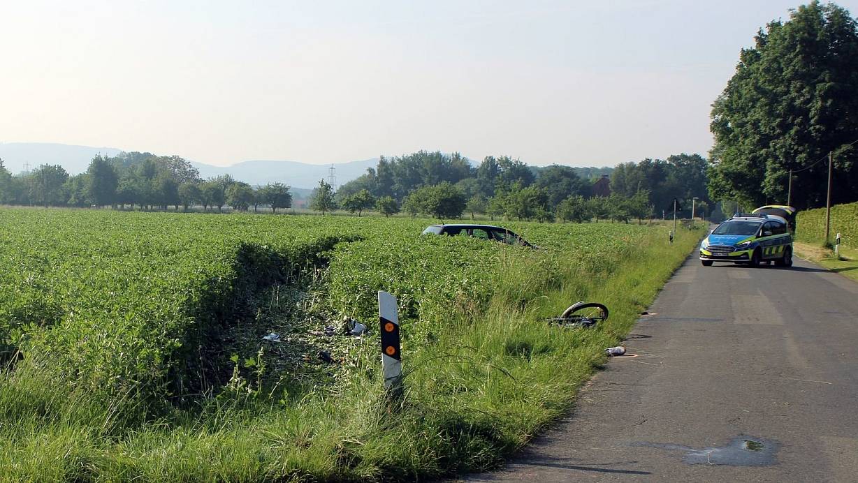 Der 19-Jährige konnte nicht mehr rechtzeitig bremsen und erfasste die Radfahrerin. Die wurde zu Boden geschleudert, wo sie schwer verletzt liegen blieb. Der Pkw geriet von der Fahrbahn ab und kam in einem angrenzenden Feld zum Stehen. Das Fahrrad hingegen wurde auf den Grünstreifen geschleudert, wo es liegen blieb.
