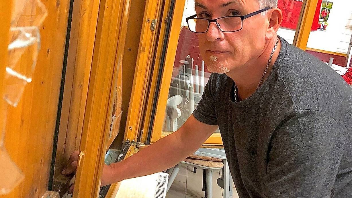 Mehreren Stunden verbrachten Verantwortliche des TuS – wie hier Vorsitzender Jörg Grothe – nach dem neuerlichen Einbruch ins Vereinsheim mit Aufräum- und Reparaturarbeiten. | © TuS Gehlenbeck