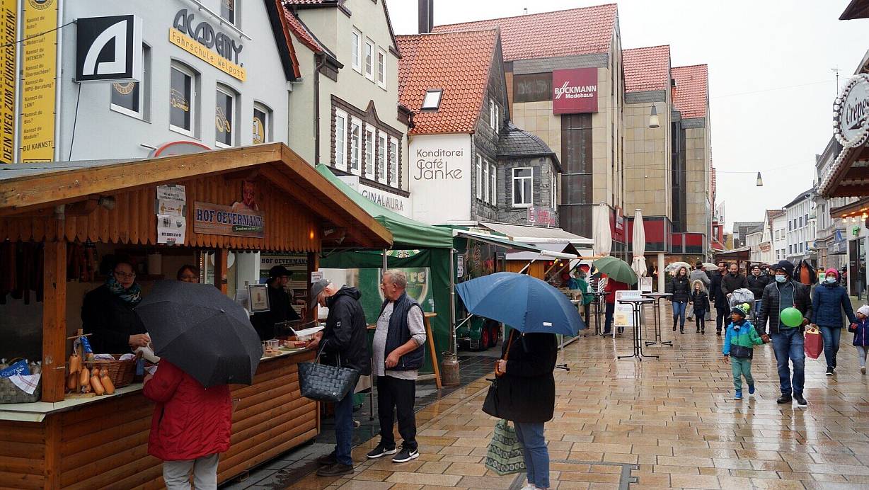 Wenige Meter von diesem Verkaufsstand auf dem Lübbecker Wurstmarkt entfernt ist der Mitarbeiter des Sicherheitsdienstes angegriffen worden. | © Michael Grundmeier