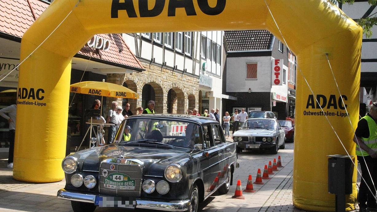Auf der Bäckerstraße wurden die Fahrzeuge auf die weitere Reise geschickt. Hier starten Jörg und Anni Frenzel aus Oldenburg mit ihrem Mercedes Benz 190 C mit den charakteristischen Heckflügeln. | © Klaus Frensing