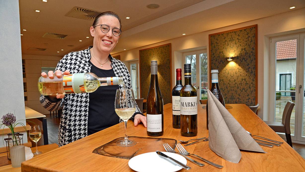Die neue Kreisvorsitzende des Hotel-und Gaststättenverbandes, Larissa Mattlage, hat sich auch von den Corona-Lockdowns nicht unterkriegen lassen. Hier ist sie bei einer virtuellen Wenprobe zu sehen, die in der Alten Rentei auf Schloss Benkhausen stattgefunden hatte. | © Gauselmann