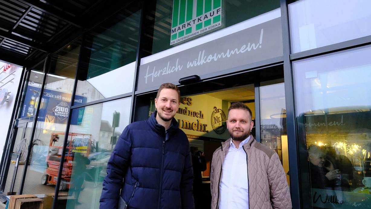 Simon Zehler, Projektverantwortlicher (l.), und Marktleiter Donjet Morina freuen sich, dass sie bald die Kundschaft im neuen Lübbecker Marktkauf begrüßen können. | © Heike von Schulz