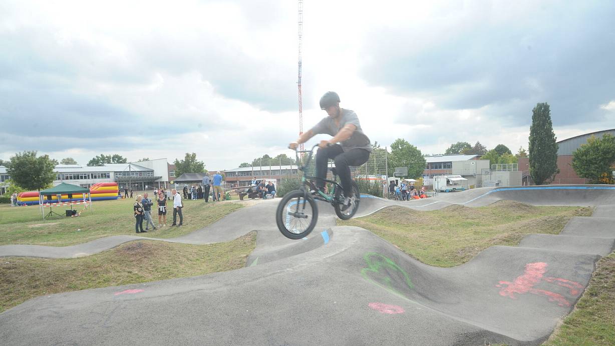 Die Pumptrack-Anlage am Rahdener Schulzentrum ist Anziehungspunkt für Familien aus dem ganzen Lübbecker Land und dient als Vorbild für Lübbecke. | © Joern Spreen-Ledebur