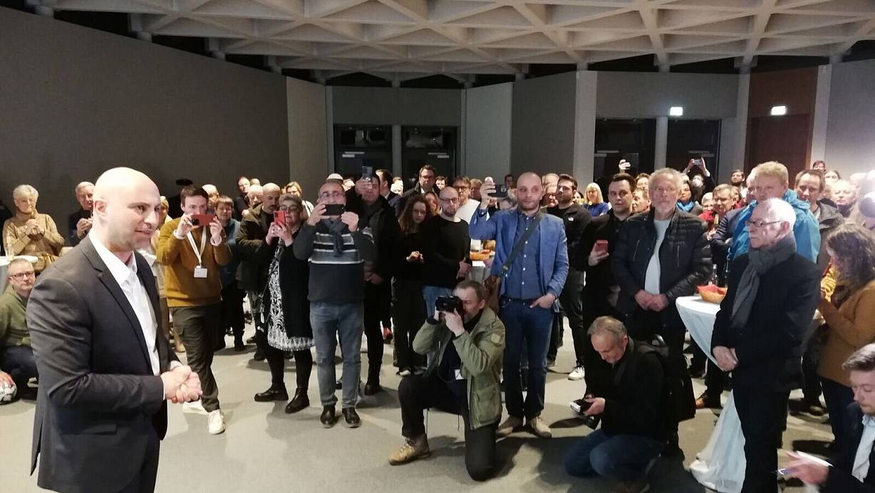 Die Wahl war ausgezählt, als sich der künftige Landrat Ali Dogan (SPD) an die Gäste im Mindener Kreishaus wandte. Er dankte allen Wahlhelfern und allen Wählern. | © Joern Spreen-Ledebur