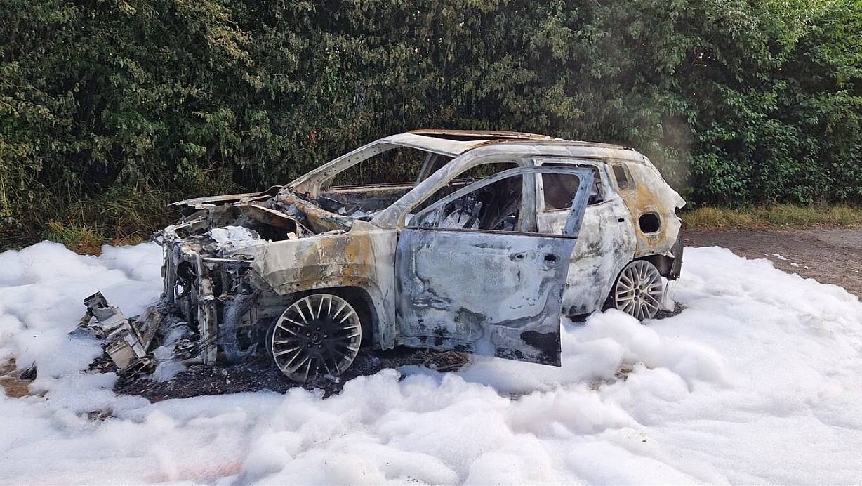 Der Jeep wurde durch den Brand komplett zerstört. | © Polizei Minden-Lübbecke