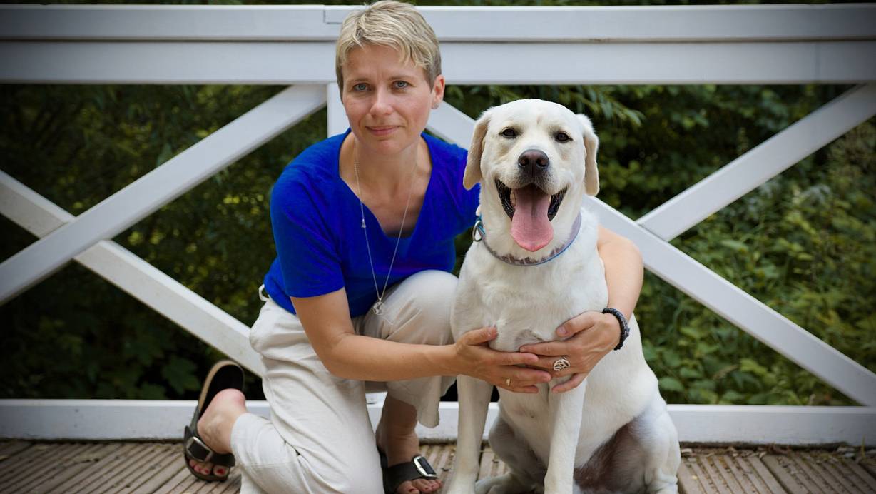 Kinder- und Jugendcoach Marion Giesbrecht, hier im Kurpark Bad Holzhausen, lässt Familienhund Barney, einen Labrador-Rüden, zu einem Therapie-Hund ausbilden. | © Fabian Giesbrecht