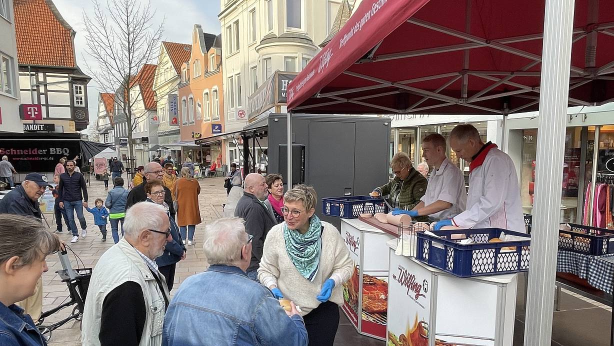 Beim Wurstanschnitt bildet sich schnell eine goße Traube von Hungrigen um die entspechenden Vekaufsstände in der Innenstadt. | © Lübbecke Marketing