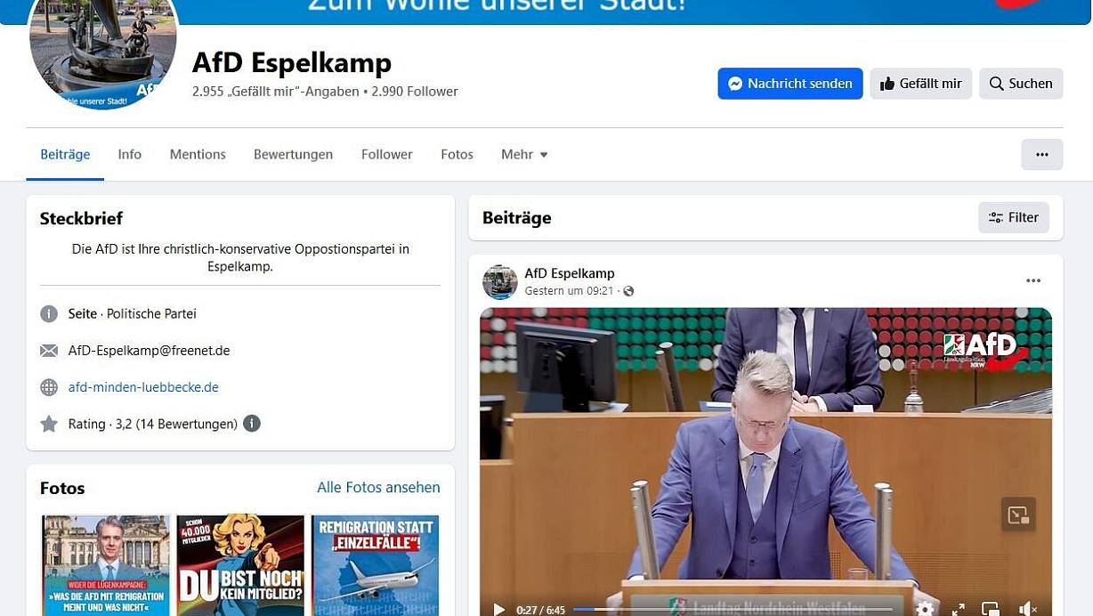 "Gegenangriff: Jetzt schlägt die AfD zurück!" heißt es auf der Facebook-Seite der AfD Espelkamp. | © Frank Hartmann