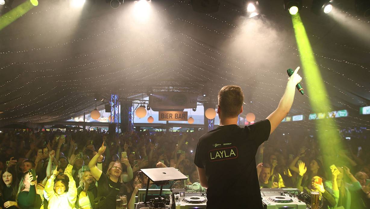 Die Menge ist begeistert: Beim Blama im Serptember 2022 sorgte DJ Robin für Stimmung im Zelt von Meiers Deele. | © Felix Schwien