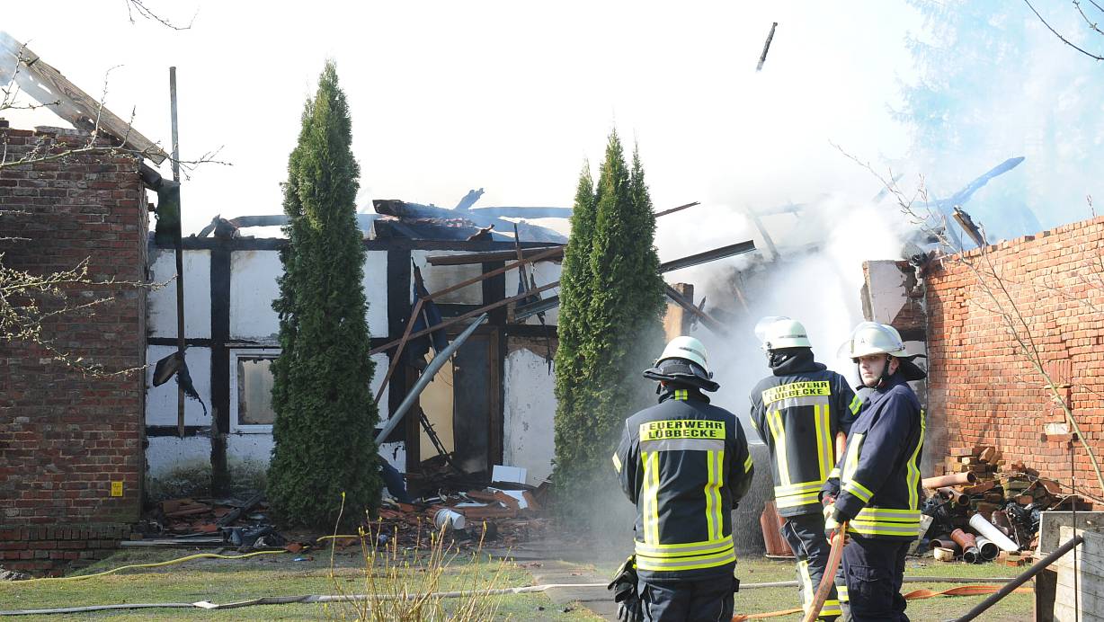 Der frühere Ortsheimatpfleger Gerd H. Niemeyer weist auf den großen historischen Wert des vor kurzem durch Feuer zerstörten Fachwerkgebäudes Am Esch hin.