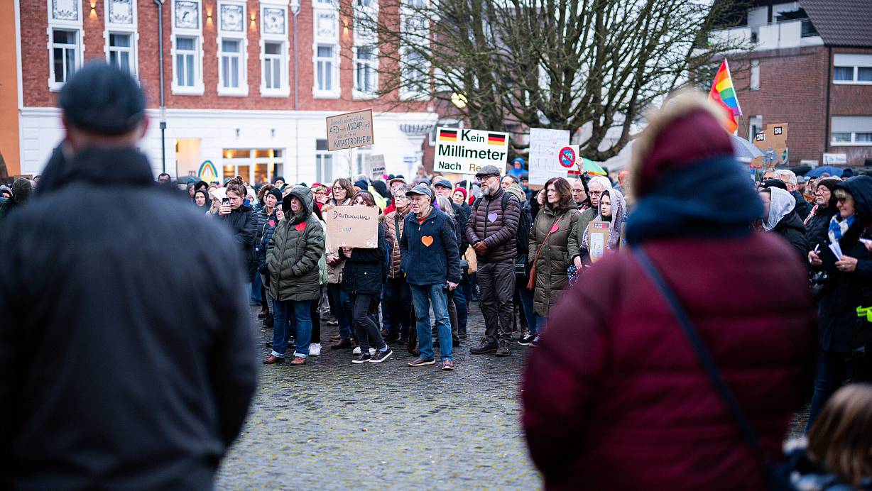 Rund 400 Bürgerinnen und Bürger protestieren kürzlich auf dem Lübbecker Marktplatz gegen die AfD und gegen Rechtsextremismus. Das Bündnis „Lübbecke zeigt Gesicht“, dem auch einige Lokalpolitiker angehören, hatte dazu aufgerufen. | © Noah Wedel