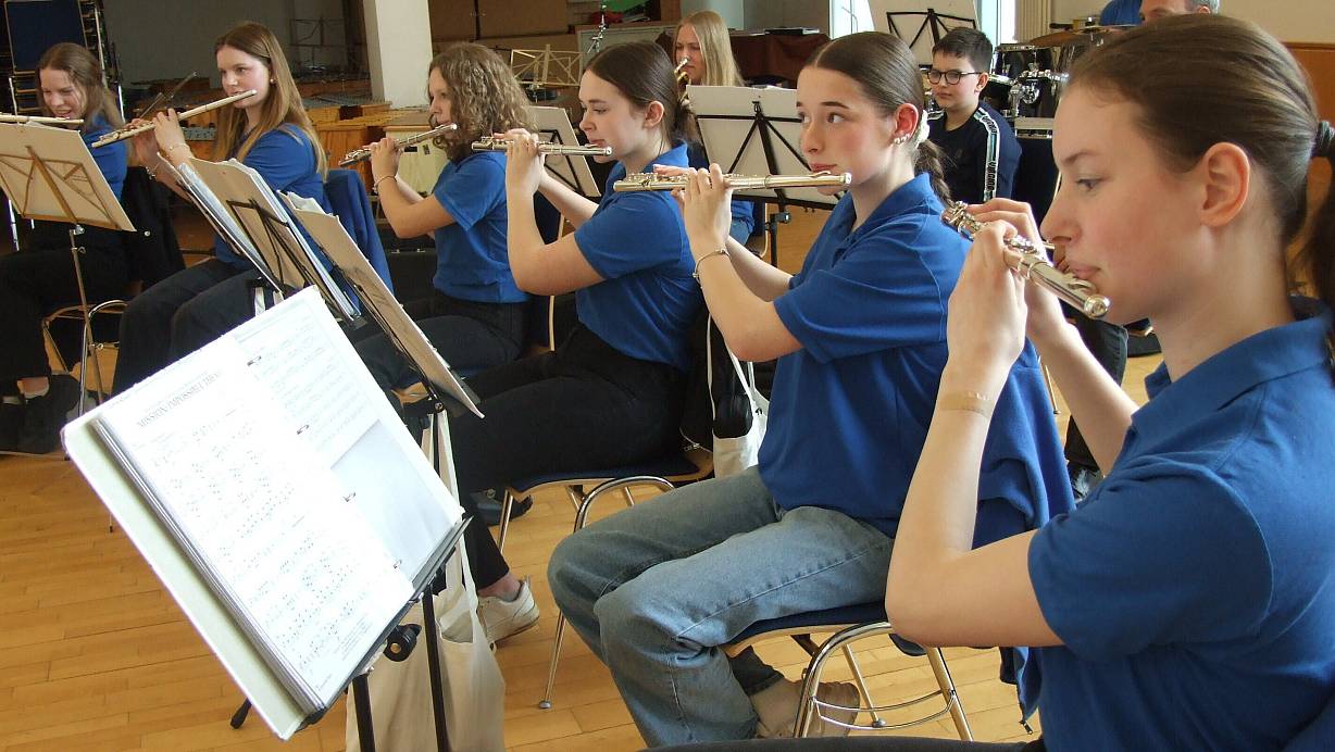 Das gemeinsame Spiel in einem Ensemble ist das, was die Musikpädagogin vor allem versucht zu vermitteln. „Was möchte ich von euch allen hören?“, fragte sie in die Runde. Die Antwort gab sie gleich selbst: „Richtige Akzente“. Oder: „Das ist eine große Septime, die ist nur sehr schwer zu treffen“. Aber dann wird es halt noch einmal geübt, bis es sitzt. Und zwar gemeinsam. Sitzt der Ton oder auch das Intervall, dann versucht sie es beim nächsten Mal „einen Tucken schneller“. Und schon klappt es ein wenig besser.